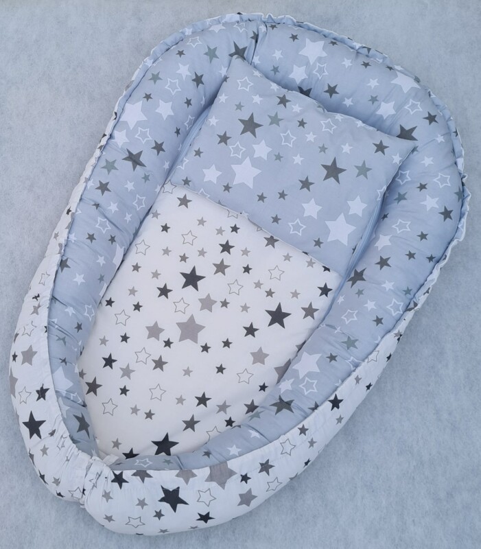Кокон у дитяче ліжечко Зірочки світло сірі