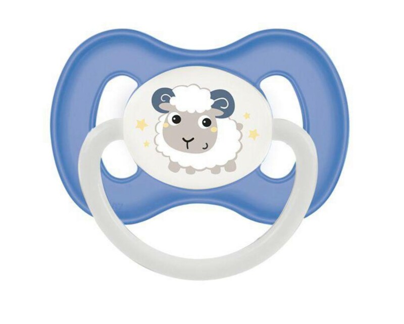 Juno, интернет-магазин детских товаров\\Пустушка латексна кругла Bunny & Company Синя Canpol Babies 6-18 м Барашек