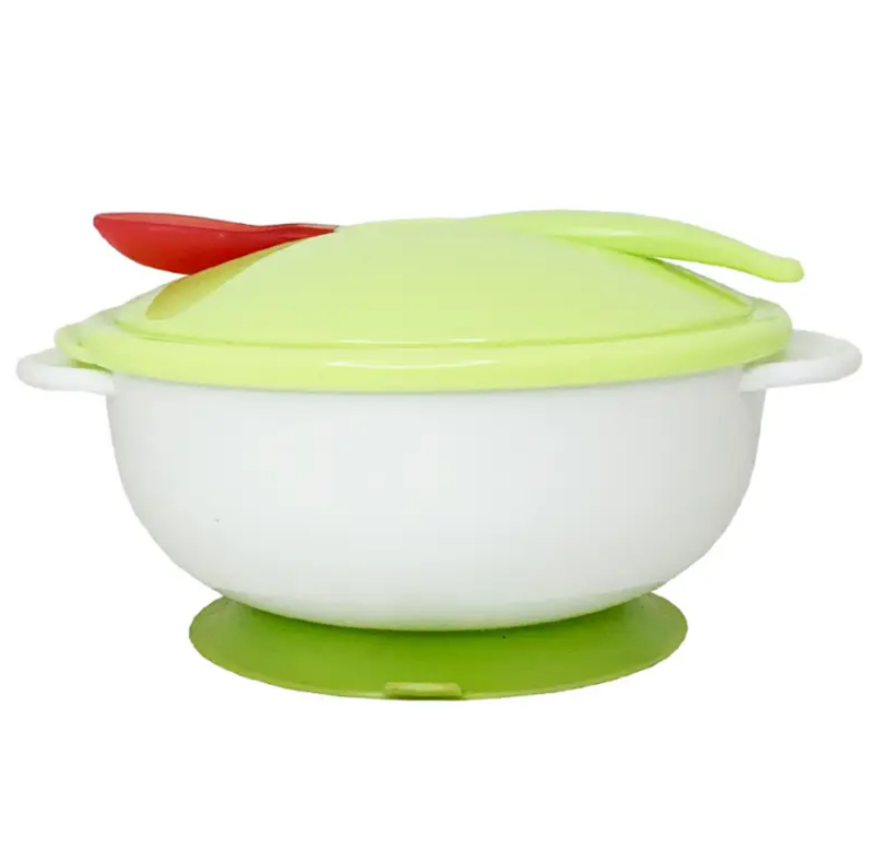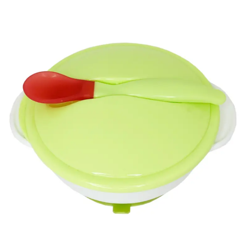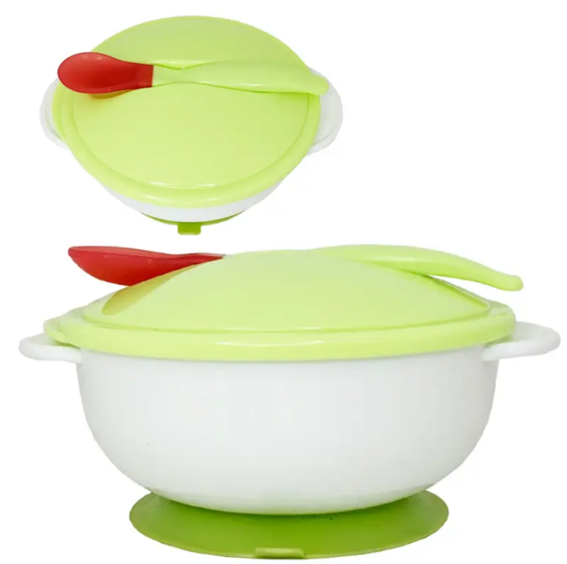 Дитяча тарілка на присосці з термоложкою та кришкою (зелена)