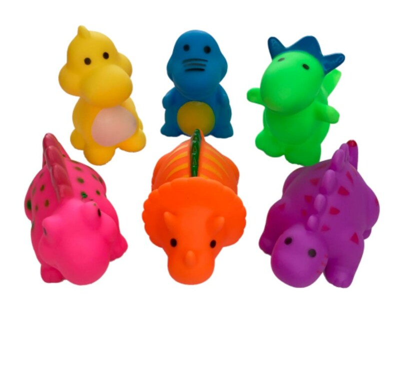 Гумові іграшки для купання "Динозаври" допомагають розвивати дрібну моторику, вчити кольори та просто дарують гарний настрій.