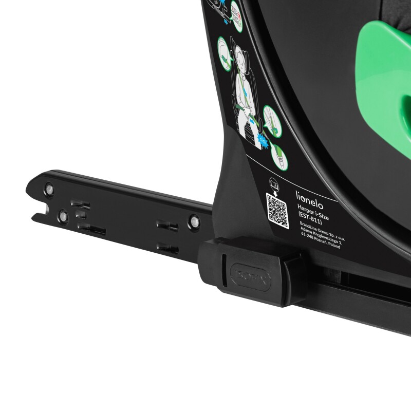 Lionelo Harper i-Size - це крісло з кріпленням ISOFIX і ременем Top Tether для дітей зростом 76-150 см. Це гарантує безпеку і комфорт подорожі для маленького користувача. Він відповідає суворим вимогам стандарту i-Size, що серед іншого означає: додатковий захист від ударів збоку автомобіля та високі, посилені бічні щитки.
