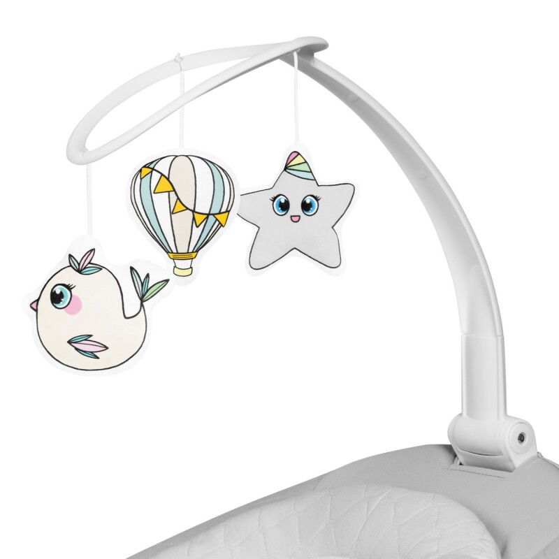 Гойдалка має 6 унікальних рухів, що коливаються - 5 основних режимів і додатковий, автоматичний, який змінюється кожні 16 секунд. Вибір із 5 швидкостей гойдання дозволить налаштувати інтенсивність відповідно до уподобань та настрою дитини. Сидіння, що обертається на 360°, дозволяє не тільки змінювати напрямок гойдання, але і налаштовувати сидіння так, щоб ви завжди могли підтримувати зоровий контакт з дитиною.