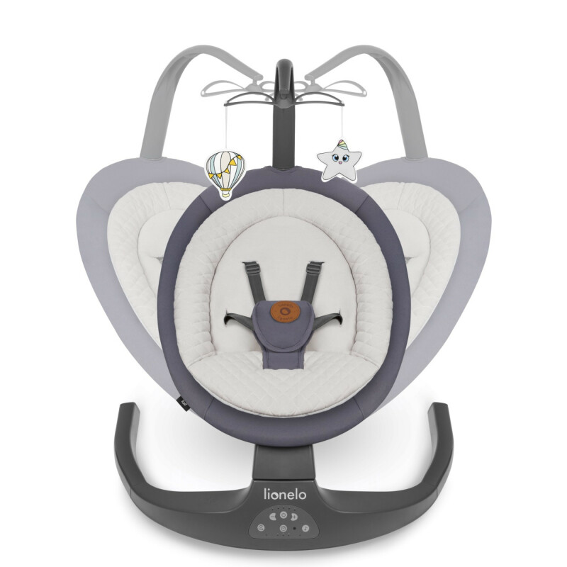 Вбудований таймер дозволяє вибрати одне із трьох значень часу гойдання - 8, 15 або 30 хвилин. У цей час вбудована музична скринька з 12 спокійними мелодіями та з'ємна пов'язка на голову з 2 іграшками успішно розважать вашого малюка. Lionelo Ralf мають блокаду, завдяки якій ви легко трансформуєте їх із гойдалок у шезлонги. Завдяки 2-ступінчастому регулюванню нахилу спинки дитина може залишатися в ній у лежачому положенні.
