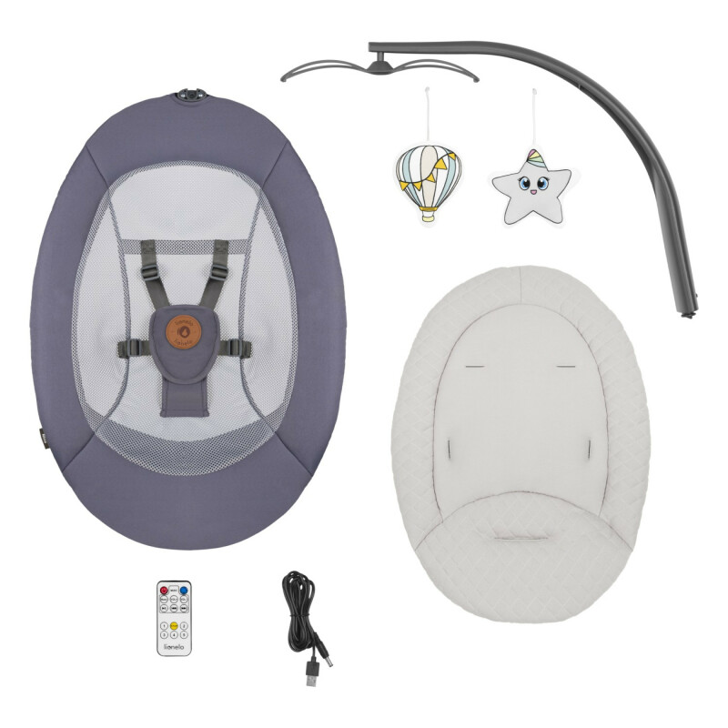 Lionelo Ralf оснащена широким сидінням відповідної форми, голова малюка фіксується м'якою подушкою. У разі забруднення оббивку можна легко зняти і випрати, а сам виріб легко переносить з кімнати в кімнату завдяки невеликій вазі.