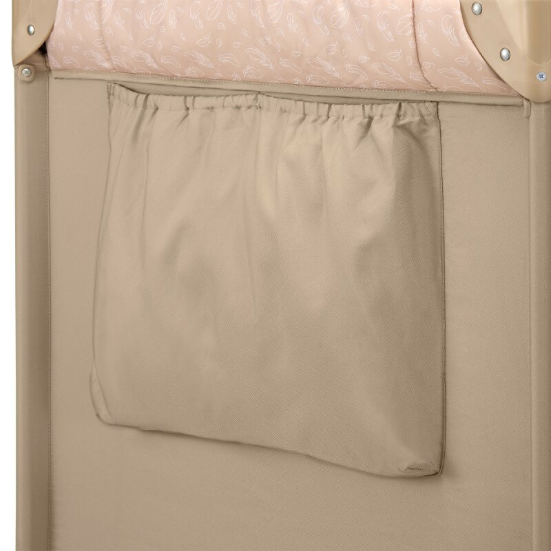 Розумні рішення Манеж оснащений бічною панеллю з блискавкою, що дозволяє старшим дітям самостійно заходити всередину. Це гарантує, що батьки не будуть перенапружувати спину щоразу, коли кладуть малюка. Також є зручна кишеня для зберігання додаткових підгузків, іграшок або серветок. У комплекті йде сумка для подорожей для додаткової зручності. Манеж виготовлений з високощільного тканого матеріалу для максимальної міцності.