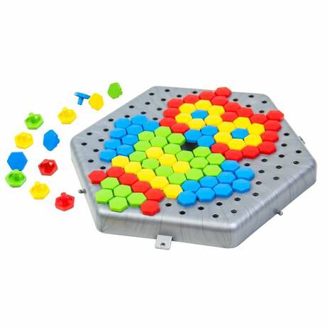 Мозаїка складається з різнокольорових фішок, книжечки з малюнками та планшетки стильного сірого кольору.