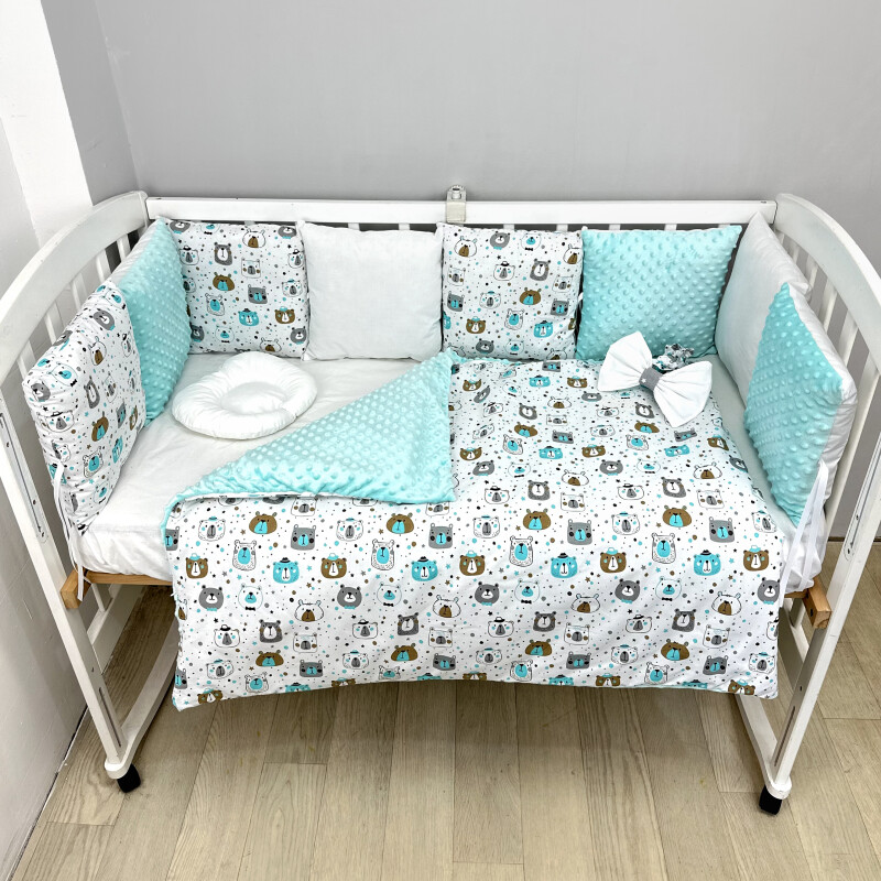 Juno, интернет-магазин детских товаров\\Набір з бортиками на 3 сторони Економ Ведмедики м'ятні