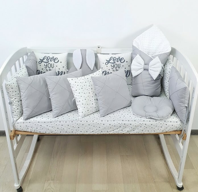 Бортики на 4 сторони зі з'ємними наволочками / або на 3 сторони+косичка 120см,