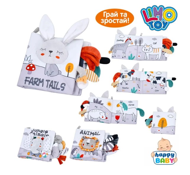 Книжка 15-15см, підвіска, пискавка, шуршить, плюш, тканина