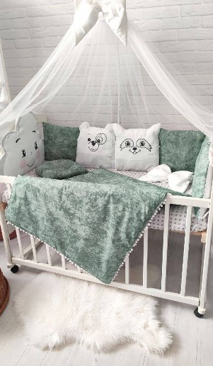 Juno, интернет-магазин детских товаров\\Набір у постіль на три сторони Велюр Зелений