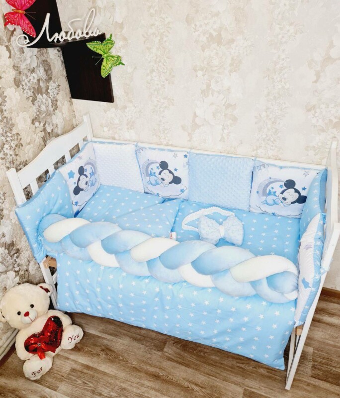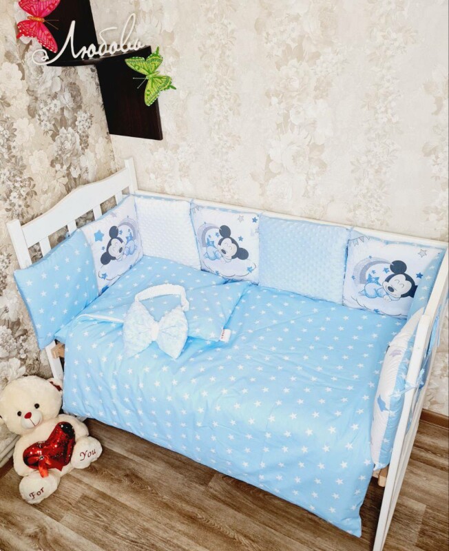 Комплект постільної білизни Bonna Mini Print в дитяче ліжечко Міккі Блакитний
