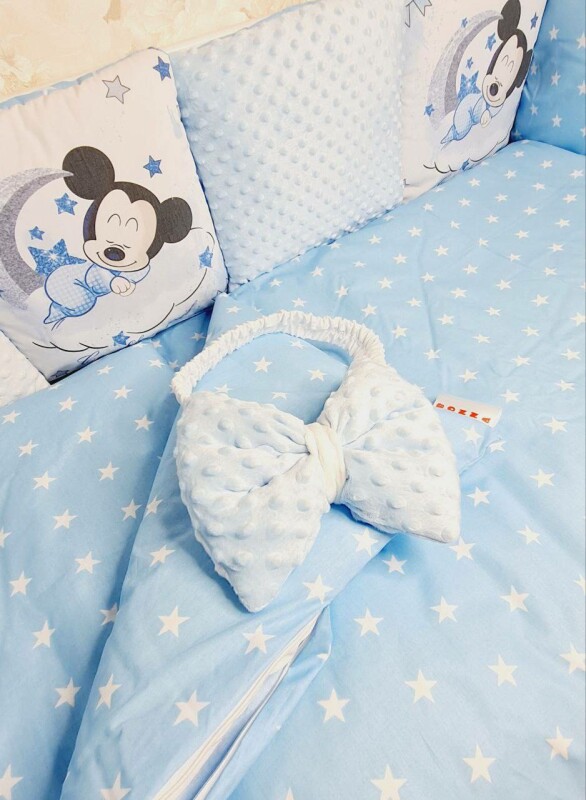 Juno, интернет-магазин детских товаров\\Комплект постільної білизни Bonna Mini Print в дитяче ліжечко Міккі Блакитний