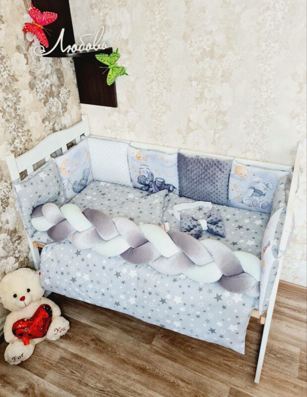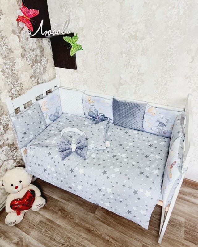 Комплект постільної білизни Bonna Mini Print в дитяче ліжечко Тедді Сірий