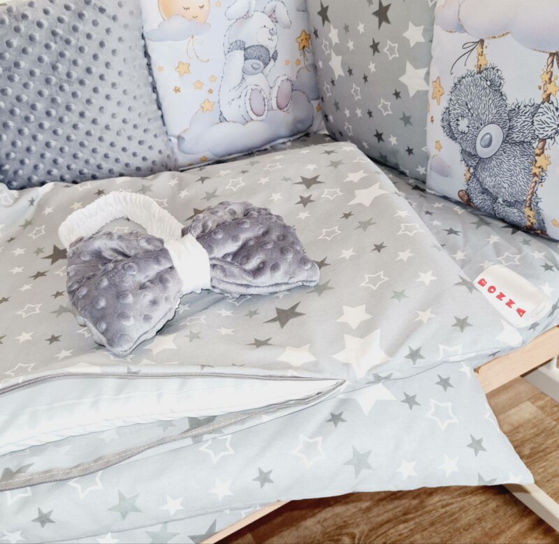 Juno, интернет-магазин детских товаров\\Комплект постільної білизни Bonna Mini Print в дитяче ліжечко Тедді Сірий