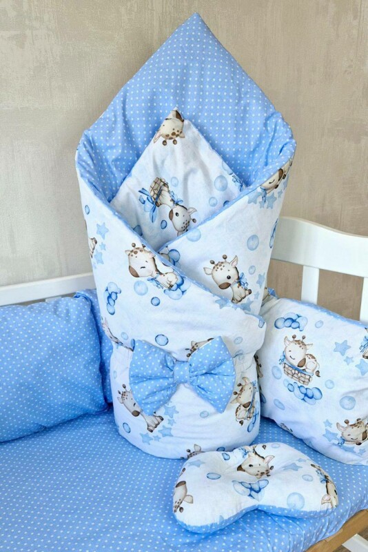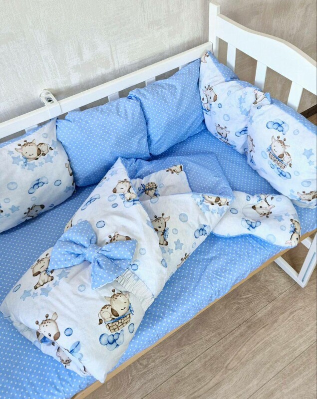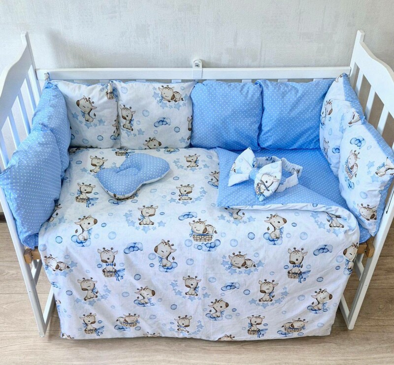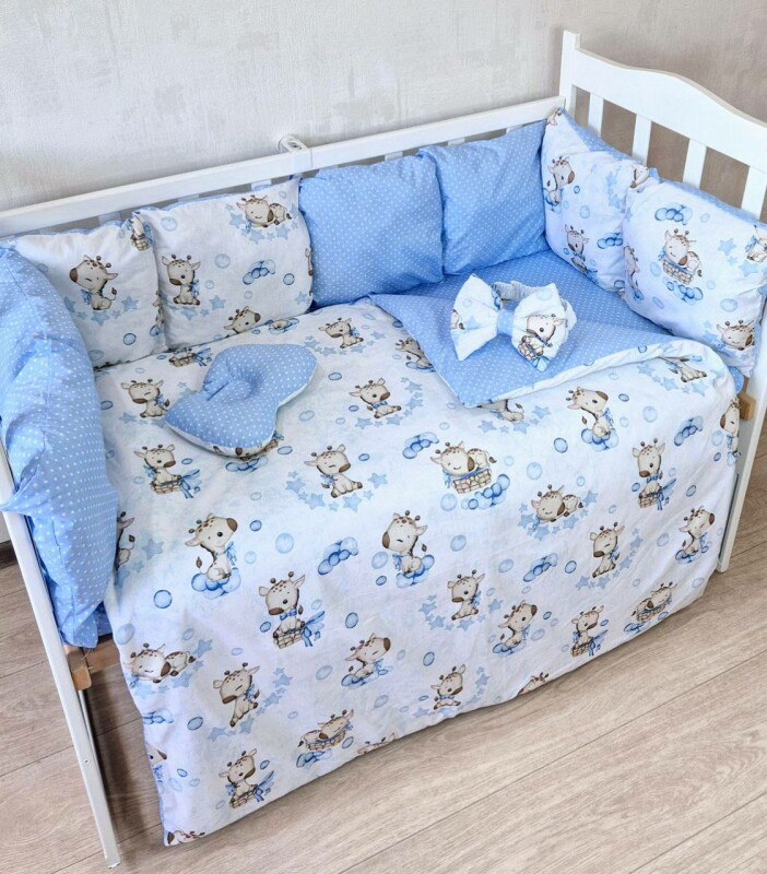 Juno, интернет-магазин детских товаров\\Комплект постільної білизни Bonna Eco New в дитяче ліжечко Жирафка Блакитна Однотон
