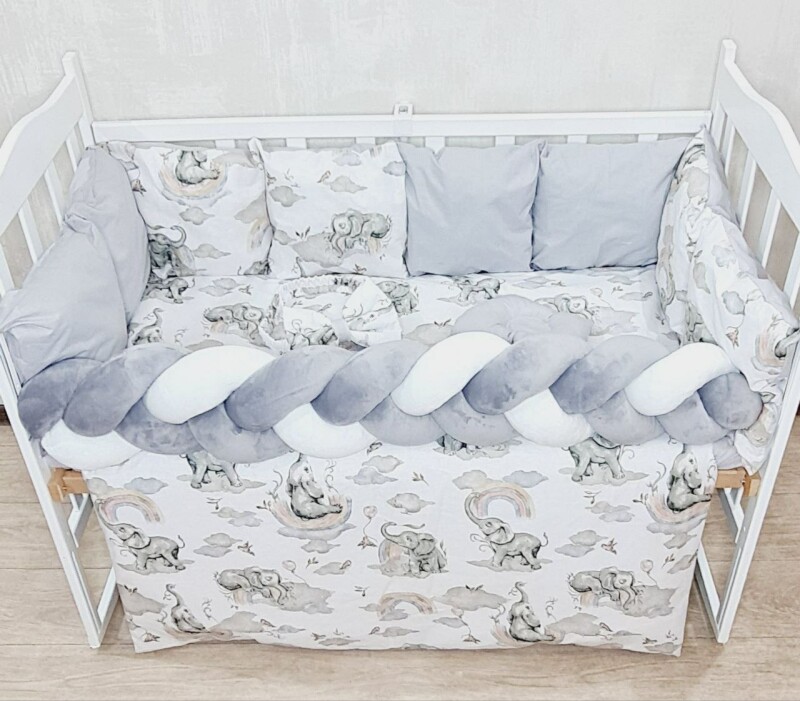 Juno, интернет-магазин детских товаров\\Комплект постільної білизни Bonna Elegance New в дитяче ліжечко Слоненя сіре