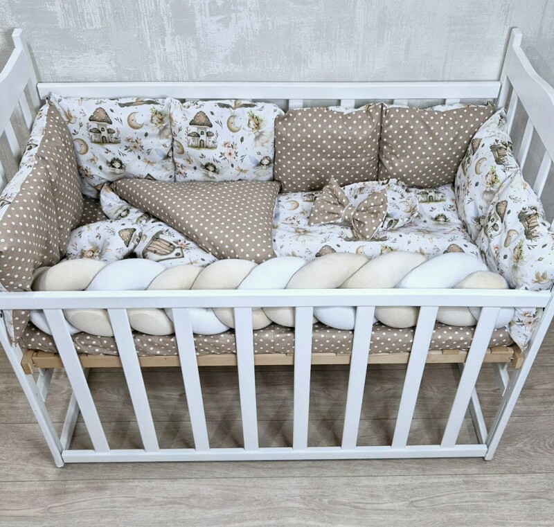 Комплект постільної білизни, в дитяче ліжечко. Графітові іграшки з коронами.
