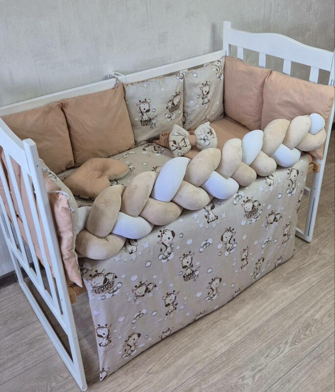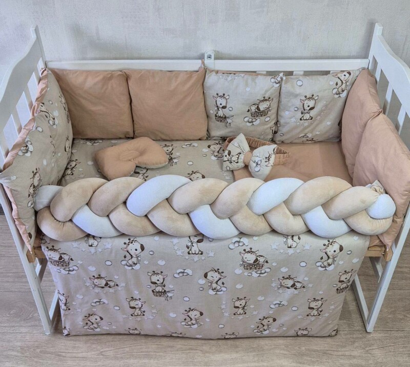 Juno, интернет-магазин детских товаров\\Комплект постільної білизни Bonna Elegance New в дитяче ліжечко Жирафка Однотон Коричневі