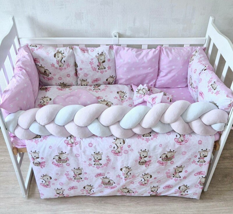 Комплект постільної білизни Bonna Elegance New в дитяче ліжечко Жирафка Світло Рожевий