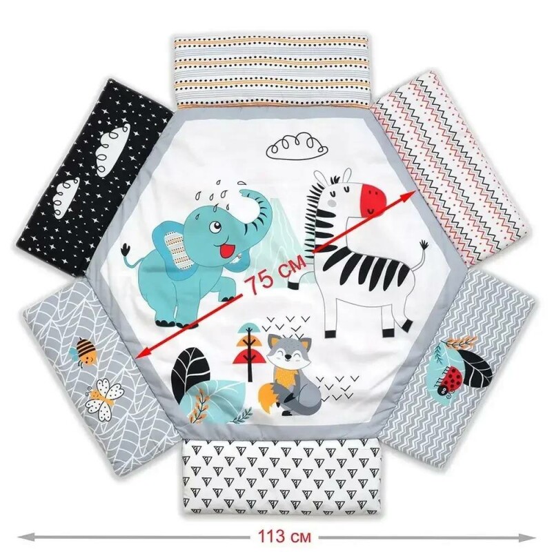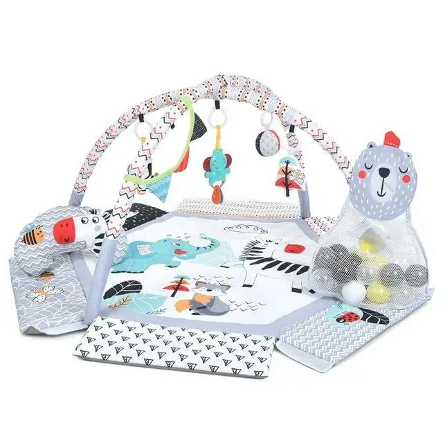 Він формує уяву дитини, вчить розрізняти форми та кольори, розвиває дотик і зір. 5 способів використання.  Дитина може грати на яскравому та м'якому килимку з чотирма чарівними іграшками, що висять над його головою, та зручною знімною подушкою у вигляді зебри. Коли дитина підросте і стане активнішою, м'яка огорожа оточуватиме її, утримуючи в безпечному місці та підтримуючи під час гри.
