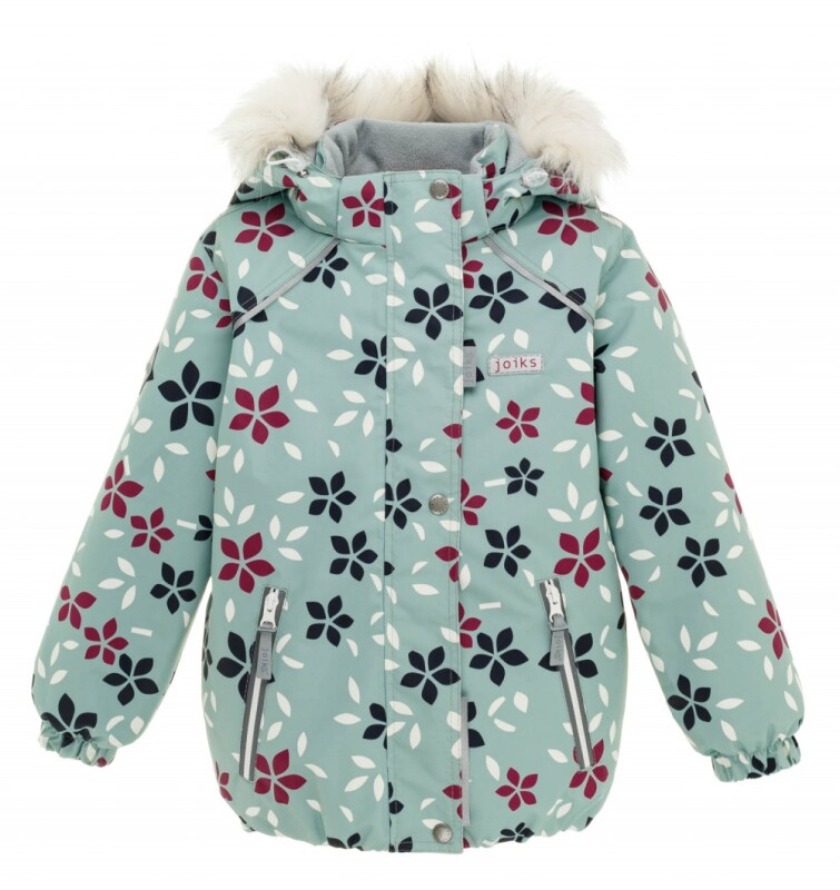 Стильний та функціональний зимовий комплект від Joiks створений для комфортних прогулянок навіть у найхолоднішу погоду. Куртка з водовідштовхувального матеріалу з яскравим квітковим принтом має знімний капюшон, оздоблений м’яким хутром, та блискавку із захисною планкою від вітру. Утеплена підкладка забезпечує тепло, не обмежуючи рухів дитини.