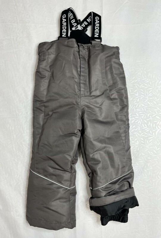 Напівкомбінезон із міцної тканини — практичний і зносостійкий, із регульованими лямками та посиленими колінами. Низ штанин має снігозахисні манжети для кращої ізоляції.
