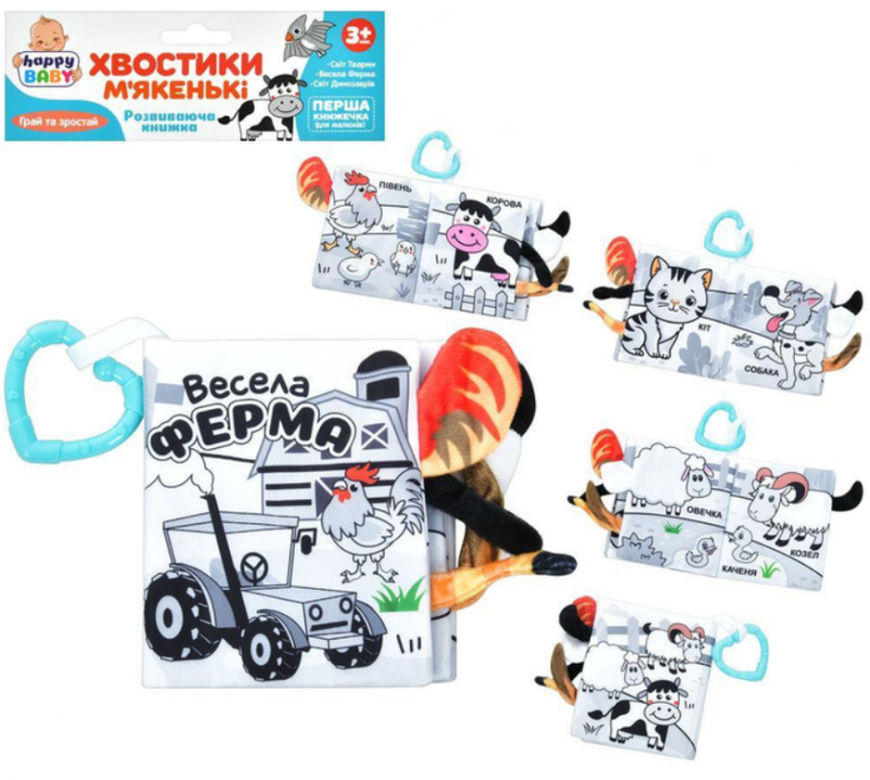 М'яка книжка-шуршалка, що розвиває, з хвостиками "Світ динозаврів" HB 0038A, укр.