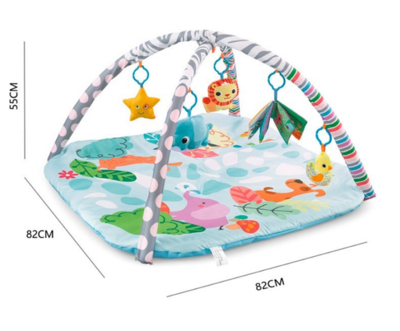 Килимок для малюків з м'якими брязкальцями на дузі підходить для дітей від 0 до 12 місяців, зроблений з м'якого матеріалу. Залежно від віку малюка він буде лежати, і спостерігатиме за іграшками, що висять зверху, або повзати по килимку, намагаючись дістати іграшки. Килимок для новонародженого постачається в комплекті з двома м'якими дугами та підвісними іграшками.