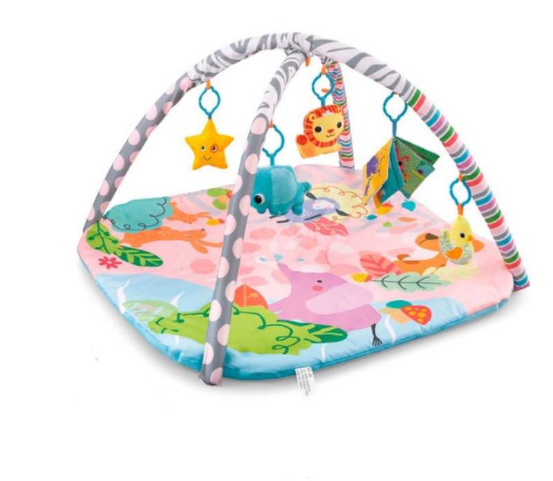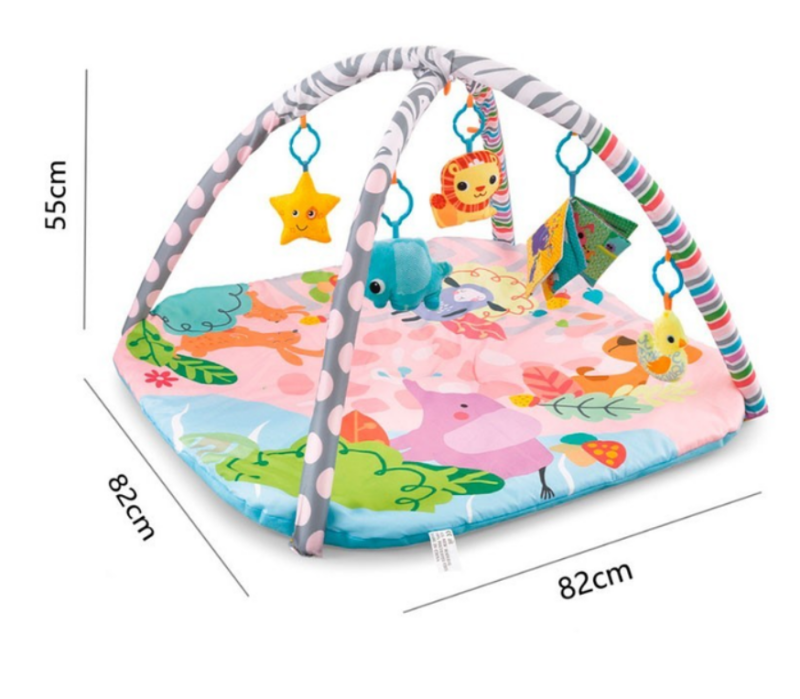 Килимок для малюків з м'якими брязкальцями на дузі підходить для дітей від 0 до 12 місяців, зроблений з м'якого матеріалу. Залежно від віку малюка він буде лежати, і спостерігатиме за іграшками, що висять зверху, або повзати по килимку, намагаючись дістати іграшки. Килимок для новонародженого постачається в комплекті з двома м'якими дугами та підвісними іграшками.