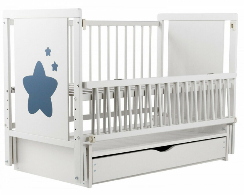 Ліжечко для новонароджених "Зірочка" від виробника Дубок з поперечним маятником та шухлядою в білому кольорі