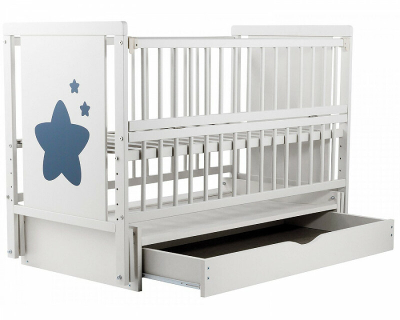 Juno, интернет-магазин детских товаров\\Ліжечко для новонароджених "Зірочка" від виробника Дубок з поперечним маятником та шухлядою в білому кольорі