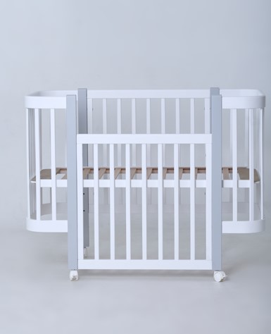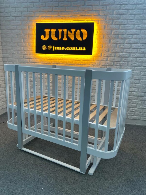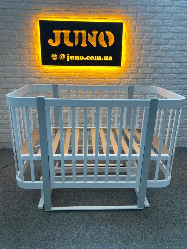 Juno, интернет-магазин детских товаров\\Дитяче ліжечко для новонароджених "Мія" виробник Кузя без шухляди з поперечним маятником в білому кольорі з сірими ніжками