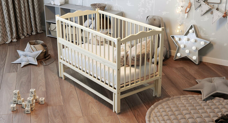 Ліжечко для новонароджених "Веселка" від виробника Дубок з поперечним маятником в кольорі слонова кістка