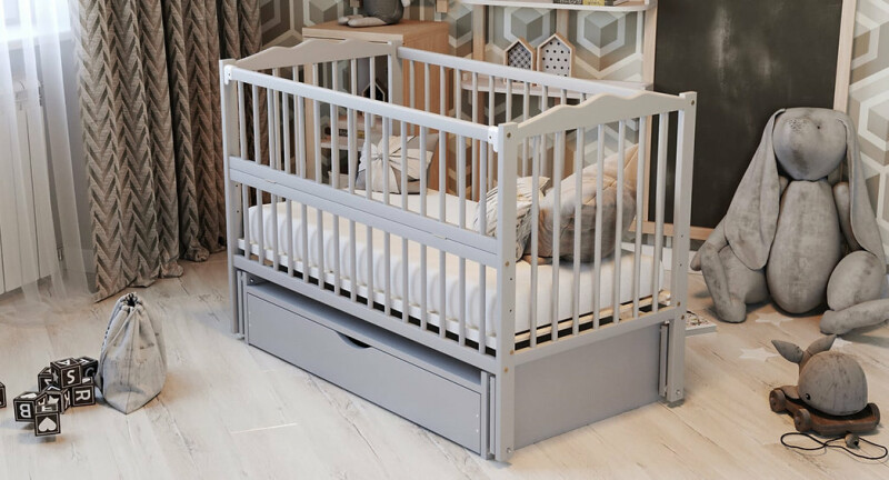 Дитяче ліжечко для немовлят ДУБОК Веселка з шухлядою маятник з відкидною боковиною бук сірий