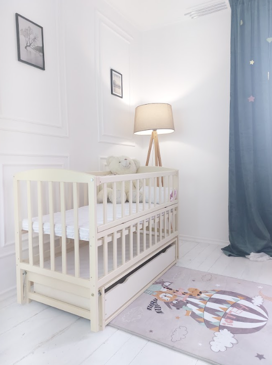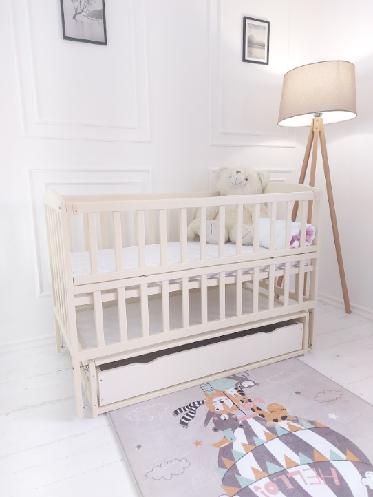 Особливістю цього ліжка є шухляда, розташована знизу, яка надає додаткового зручності і функціональності. Вона може служити для зберігання постільної білизни, іграшок, одягу чи інших дитячих речей.