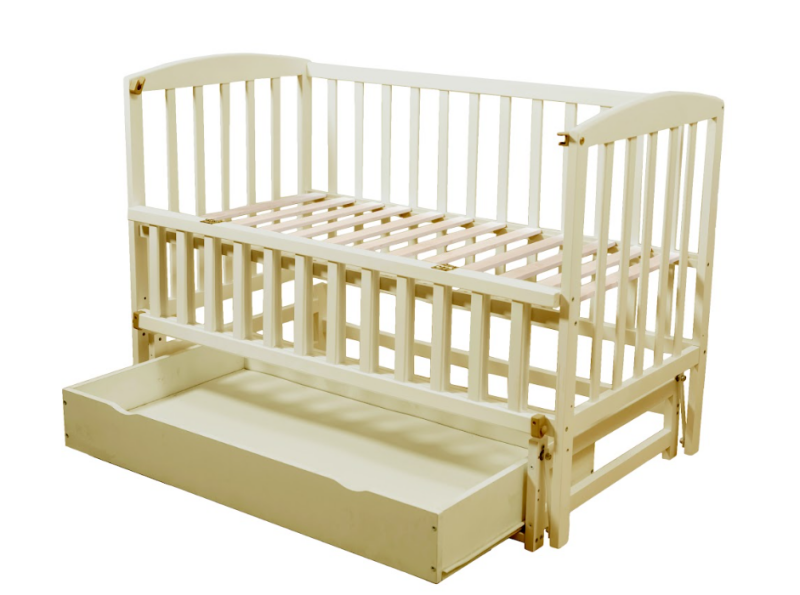 Система планок враховує навіть найдрібніші деталі безпеки, забезпечуючи, що ручка або ніжка вашого малюка не застрягнуть між ними. Відкидна боковина ліжка служить як захисний бар'єр для дитини та полегшує доступ для батьків. Вона фіксується надійними пластмасовими фіксаторами.
