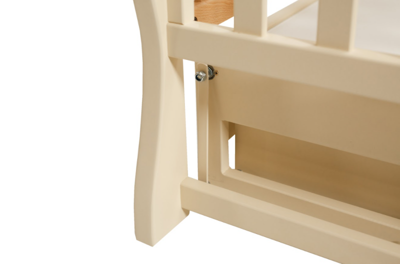 Відкидна боковина ліжка служить захисним бар'єром для дитини, а також полегшує доступ для батьків. Вона фіксується надійними пластмасовими фіксаторами, забезпечуючи стабільність та безпеку.