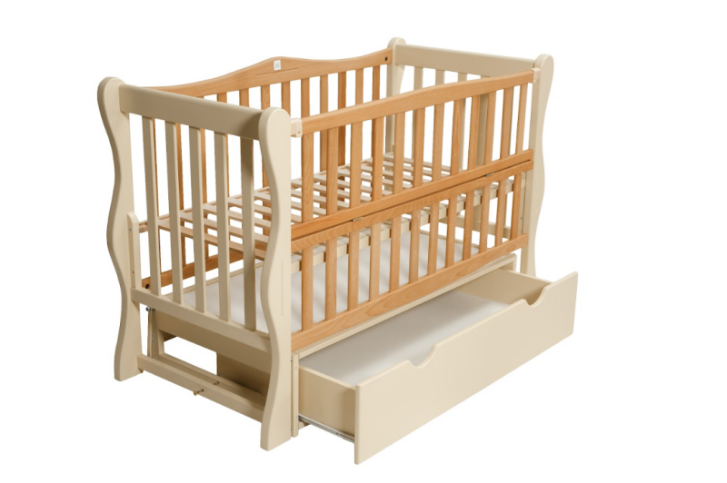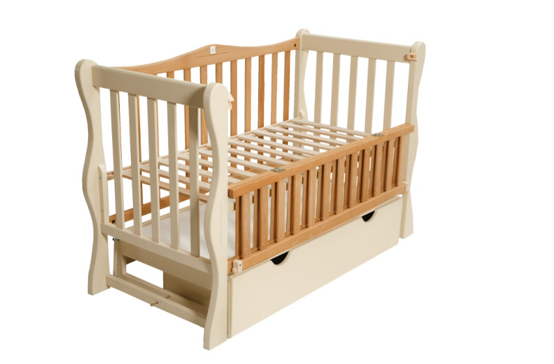 Дитяче ліжечко SOFI з відкидною боковиною та шухлядою слонова кістка+натуральний