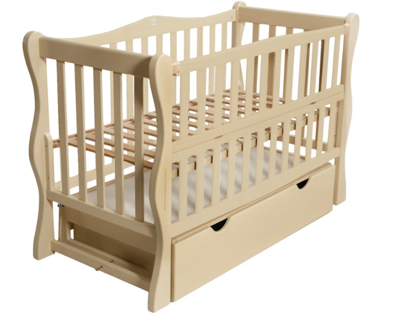Дитяче ліжечко SOFI з відкидною боковиною та шухлядою слонова кістка