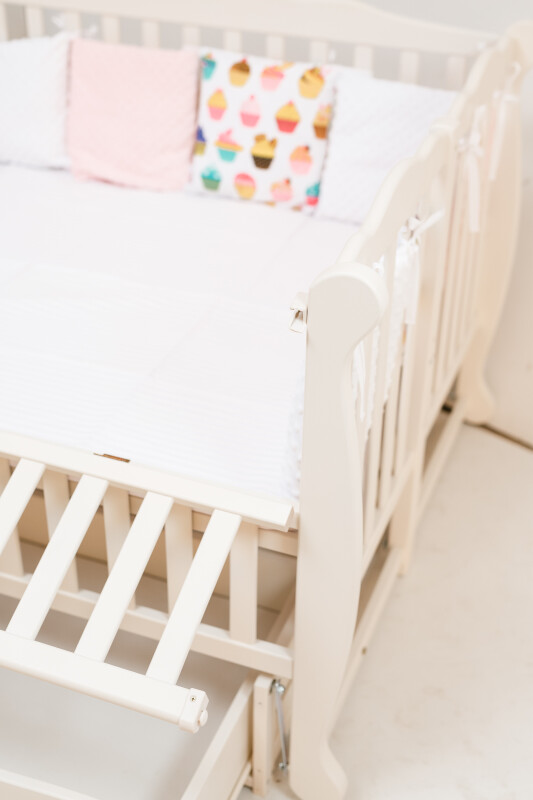 Дитяче ліжечко DUO з відкидною боковиною та шухлядою білий