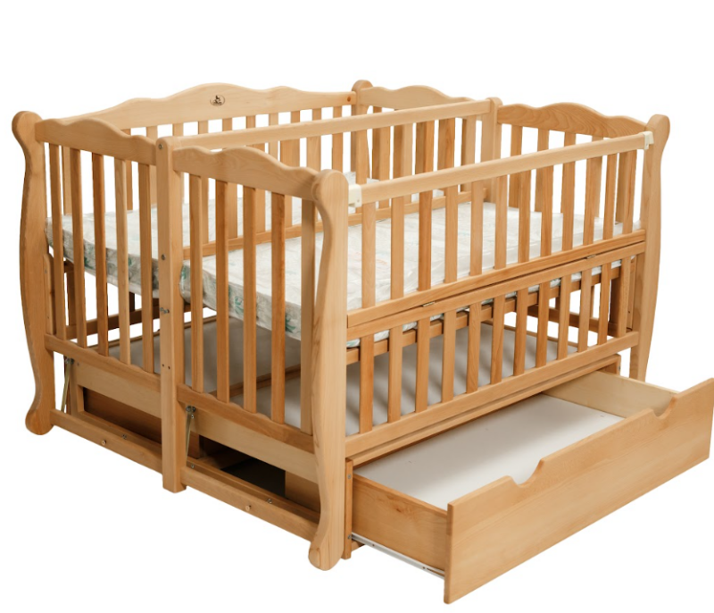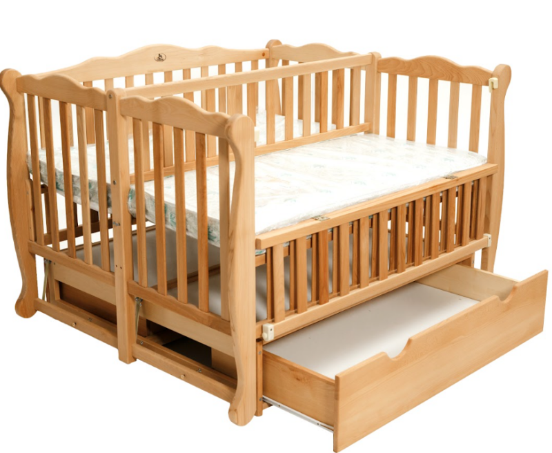 Дитяче ліжечко DUO з відкидною боковиною та шухлядою натуральний