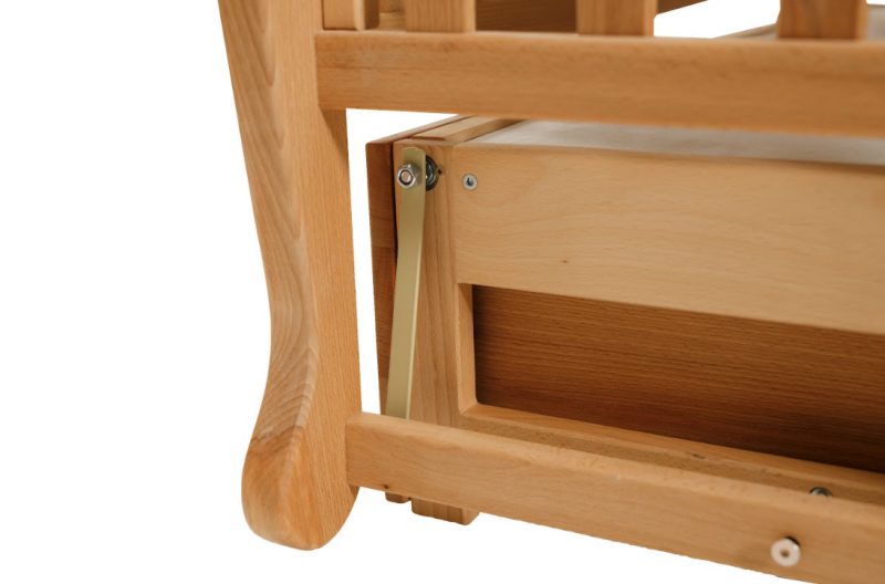 Зроблене на шарнірах з підшипниками, це ліжко може коливатися ніжно для тих миттєвостей засинання. І якщо ви вирішили зробити його стабільним, просто зафіксуйте підшипники. Безліч можливостей для вашої зручності!