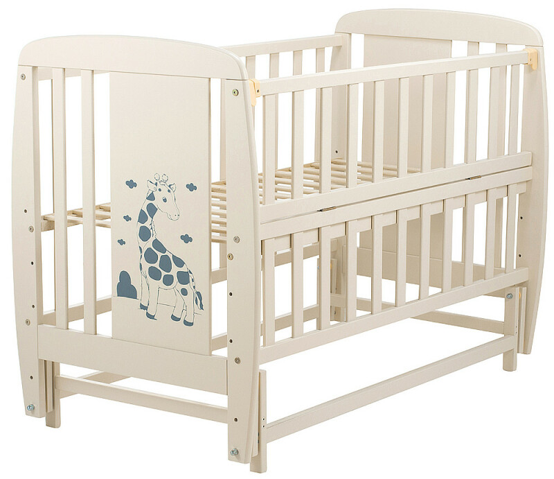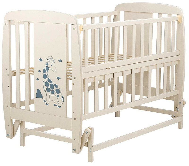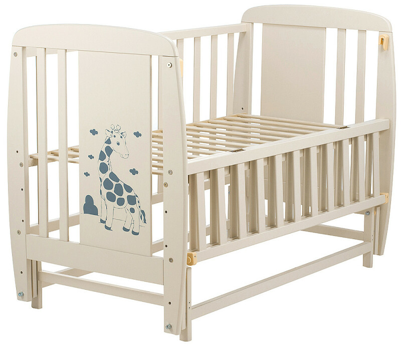 Juno, интернет-магазин детских товаров\\Ліжко ДУБОК Жирафік DJMO-02 маятник, відкидний бік бук слонова кістка