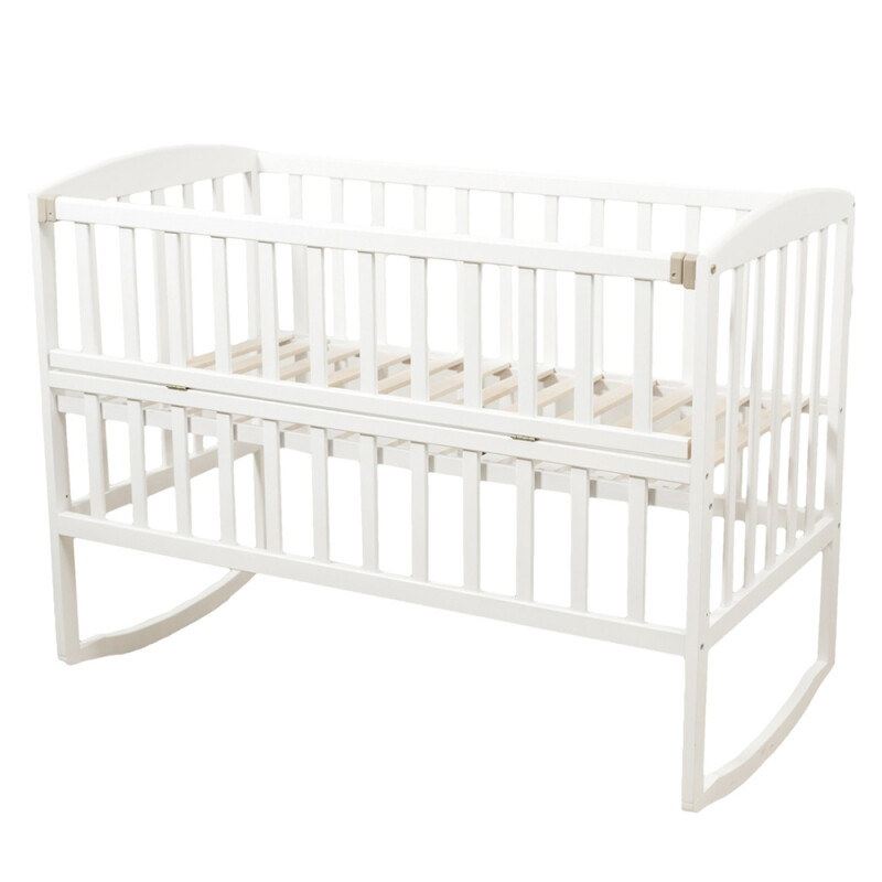Ліжко виготовлене на дугах, за допомогою яких воно може хитатися. Згодом потреба качати дитину відпадає. Для такого випадку ліжечко укомплектоване колесами, які також дадуть Вам можливість легко перемістити його в будь-яке місце Вашої оселі для зручності або зміни інтер'єру.