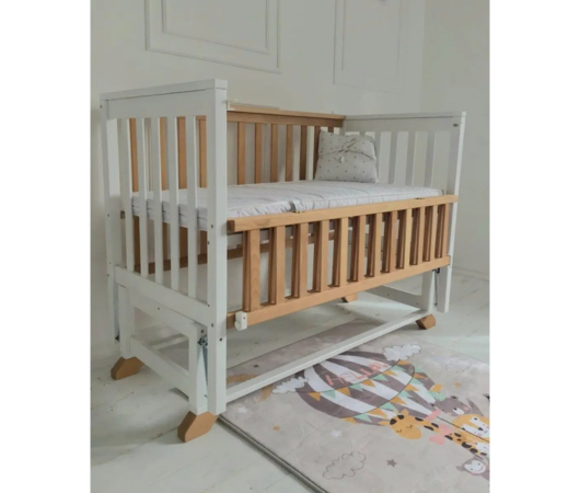Виготовлене з натурального карпатського бука, ліжечко має міцну конструкцію та екологічне покриття, яке не викликає алергії. Усі деталі ретельно відшліфовані, а відстань між планками підібрана так, щоб виключити травмування дитини.