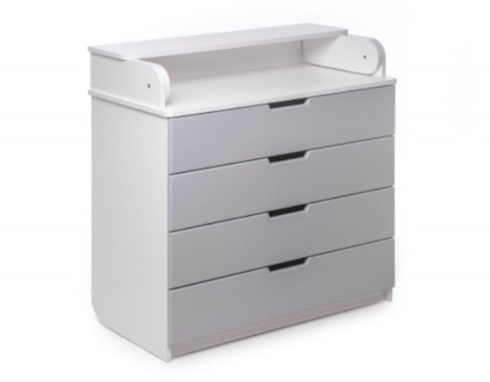 Дитячий KOMOD – ідеальне рішення цього питання. Він не займає багато простору та характеризується чудовою місткістю. У його чотирьох ящиках буде місце для всього необхідного. Верхня частина комоду легко відкидається та перетворюється на зручний пеленальний столик, який за необхідності знімається. А заокруглені борти дозволять безпечно переодягнути малюка.