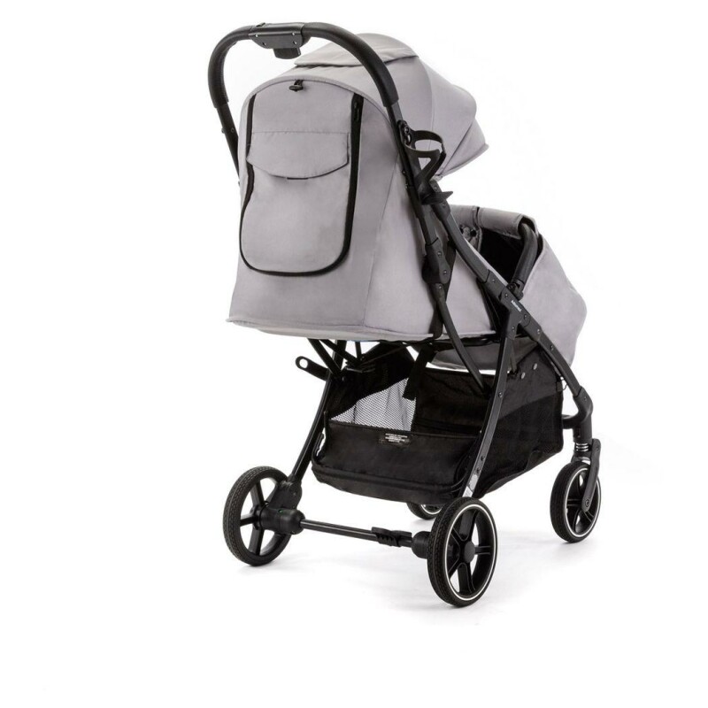 Ви можете вільно і плавно регулювати спинку за допомогою ременя (так зване безступінчасте регулювання спинки), а підніжка має 2 рівні регулювання. У каптурі є вентиляційне віконце з москітною сіткою, через яке можна спостерігати за малюком. У задній частині капюшона ви знайдете панель з кишенею для дрібниць, яка при розстібуванні перетворюється на велике вентиляційне вікно.