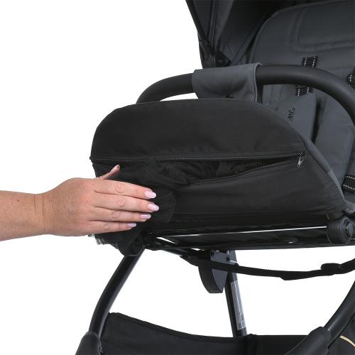 Коляска оснащена глибоким капюшоном, який регулюється блискавкою для створення оптимального укриття, а вентиляційна панель на задній частині забезпечить прохолоду у спекотні дні. Віконце для спостереження та зручна кишеня для дрібниць роблять кожну прогулянку ще приємнішою для батьків.
