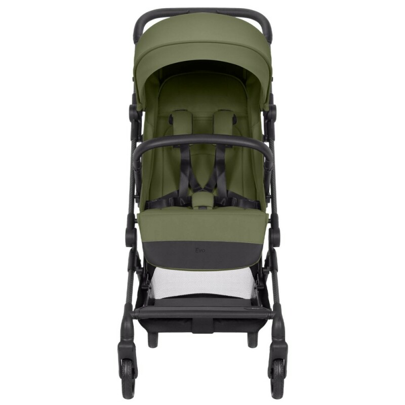 За безпеку відповідають 5-точкові ремені та поворотний бампер. Маневрені PU-колеса з гарною амортизацією та практичний кошик для покупок роблять кожну прогулянку з Carrello Evo максимально зручною.