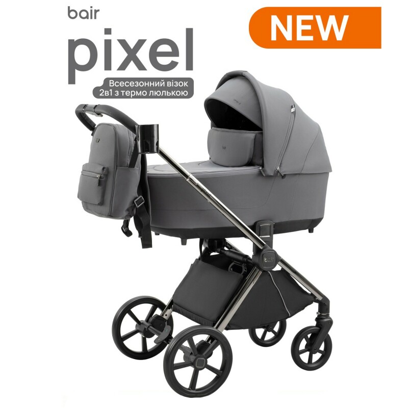 Bair Pixel – універсальний дитячий візок 2в1 для дітей від народження, який ідеально поєднує стиль, легкість та інновації. Модель Pixel оснащена хромованою рамою та продуманими деталями до дрібниць.
